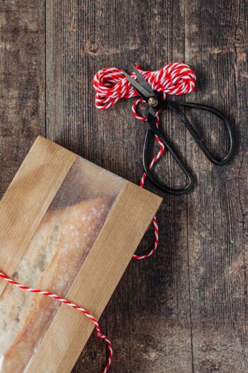 Unser Sichtstreifenbeutel besteht nur aus Papier. Der Sichtstreifen aus einem speziellen Pergamentpapier, das eine problemloses Erfassen des Inhaltes erlaubt und doch nur Papier ist.