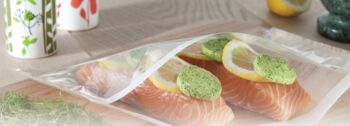 Der Fischhändler kann unsere Verpackung platzsparend als Rolle vorrätig halten und für jeden Einkauf die passende Länge abziehen. Nach der Versiegelung mit einem entsprechenden Gerät übergibt es seinem Kunden ein perfekt und sicher versiegeltes Paket mit Aromaschutz. Doch auch wenn kein Siegelgerät vorhanden ist, kann der Händler 2 oder 3 Größen konfektionierter Fischbeutel verwenden, die dann über eine selbstklebende Klappe perfekt und sicher verschlossen werden.