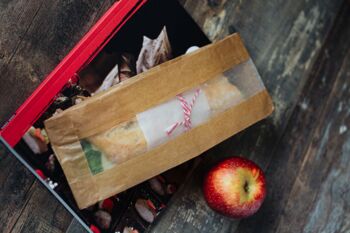 Unsere Sichtstreifenbeutel sind sowohl in braunem wie auch in weißem Papier herstellbar.