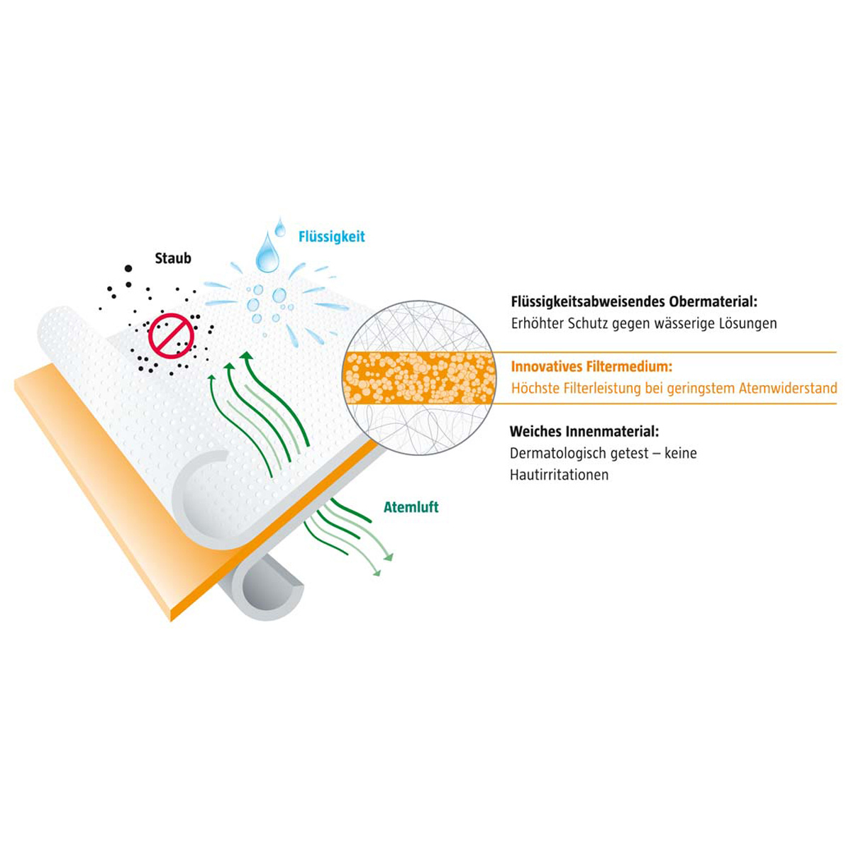 - Diese Atemschutzmaske bietet sicheren Schutz gegen Stäube, Aerosole und nicht flüchtige, flüssige Partikel