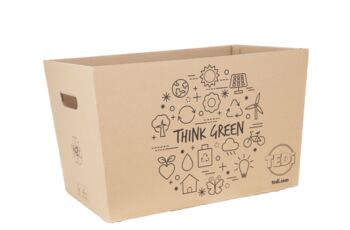 Beim Kauf von unseren faltbaren Kassenkartons fallen bei Ihnen deutlich weniger Entsorgungsgebühren im Vergleich zu anderen Verpackungsmaterialien an. (z.B. 87% weniger Kosten vs. Kunstoffe)