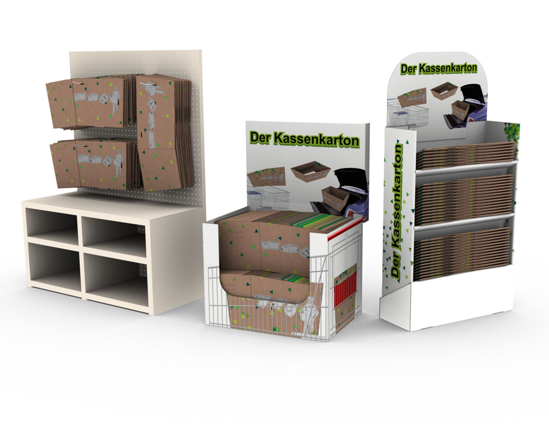 Der faltbare Kassenkarton ist eine sehr einfache und praktische Verpackungslösung, weil er von dem Kunden selber aufgebaut wird. Dadurch werden Personalkosten in Höhe von ca. 6-7 Cent je Karton zu üblichen planen Kassenkartons eingespart.